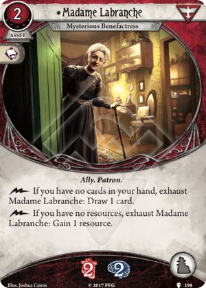 Enter Madame Labranche. These three cards are the core assets to making this deck work. You will now be able to hugely exploit the reliability and action compression of Compass when you have all 3 of these assets in play (which only cost 8 altogether to put out, which is not much!)